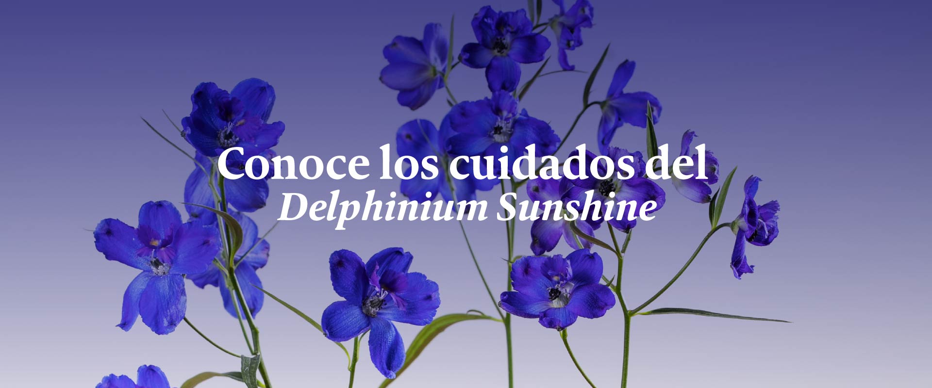 Para que el Delphinium Sunshine crezca erguida y puedan cosechar tallos de buena calidad, se recomienda colocar algún tipo de soporte a la planta, ya que los los Delphinium tienden a doblarse fácilmente. Un aspecto importante a cuidar durante la floración, es la altura del tallo a la cual se va a realizar la cosecha de la flor, en especial cuando se requiere limpiar la planta de tallos que ya no son productivos. Si se quiere mantener el vigor de la planta para que genere nuevos tallos y nuevas flores en las siguientes temporadas, es esencial !no realizar podas!